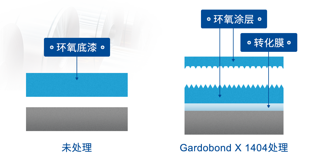 提升结合力强度:通过Gardobond X 1404的预处理,不但能够让金属基材表面与涂层间的结合力提升一个等级,增加结合力强度,更能减少水分的侵蚀,延长涂层的使用寿命。